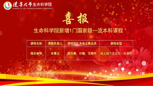 近日,教育部高等教育司发布了《关于第二批国家级一流本科课程认定结果的公示》,我院朱春玉教授负责的《微生物学》课程获评国家级线上线下混合式一流课程,标志着学院在一流本科课程建设方面取得了阶段性突破。