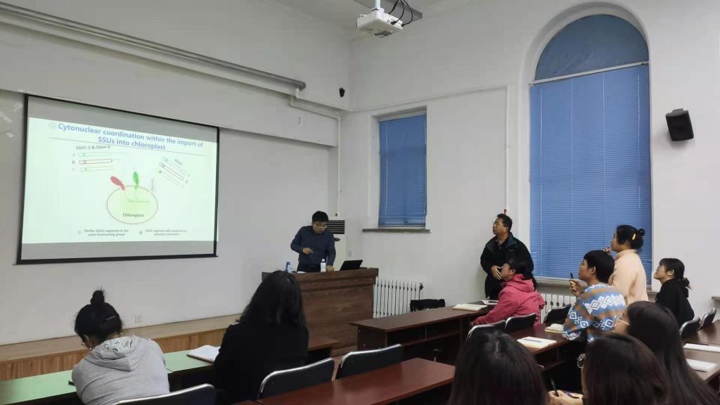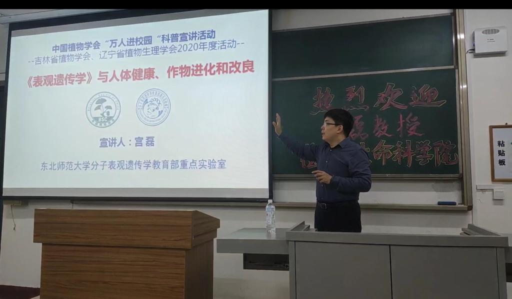 2020年11月18日下午,在崇山校区东配楼102举行了中国植物学会“万人进校园”科普活动。yl23455永利集团有幸邀请了东北师范大学生命科学学院副院长、博士生导师宫磊教授,为生命学子做了题为《<表观遗传学>与人体健康、作物进化和改良》的讲座。yl23455永利集团党总支副书记兼副院长王楠主持了讲座,院内120余名本科生参加了本次活动。