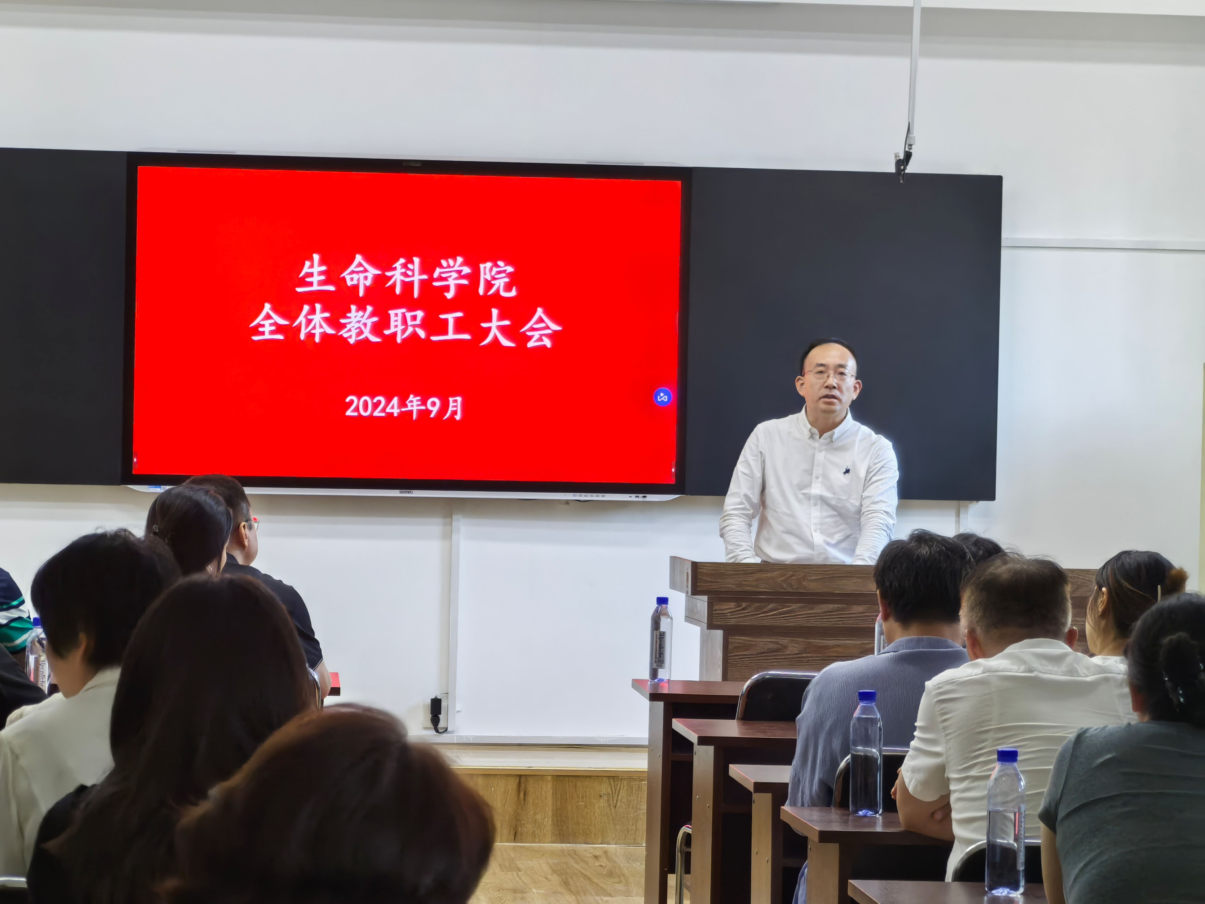 9月2日,yl23455永利集团在溯源楼329组织召开全体教职工大会,传达落实9月1日学校中层干部大会精神。副校长仇焕广出席会议并讲话,学院领导班子、全体教职工参加会议。会议由学院党委副书记兼副院长、纪委书记杨鸣主持。