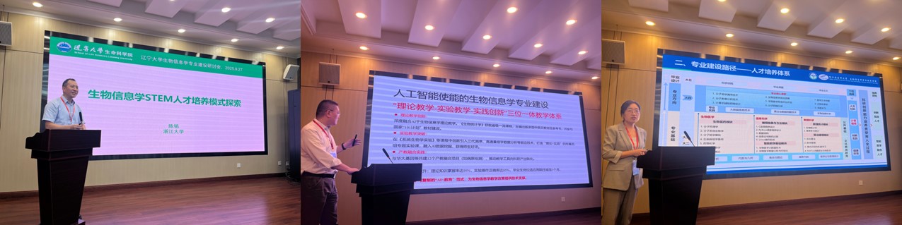 本次研讨会邀请到3位知名专家进行主题报告。来自浙江大学的陈铭教授是生物科学“101计划”核心课程生物信息学的牵头专家,陈教授围绕“生物信息学STEM人才培养模式探索”主题同与会者进行了交流与分享。来自华中科技大学的宁康教授以“基因组学及宏基因组学课程为例对‘理论教学-实验教学-实践创新’三位一体的教学体系构建与实践”为题,同与会者分享了人工智能赋能的生物信息学专业建设经验。来自哈尔滨医科大学的顾云燕教授围绕“探索面向精准医学的生物信息学专业建设”主题,分享了该校生物信息学专业特色与人才培养模式,强调了科研创新能力培养贯穿育人全过程的重要性。