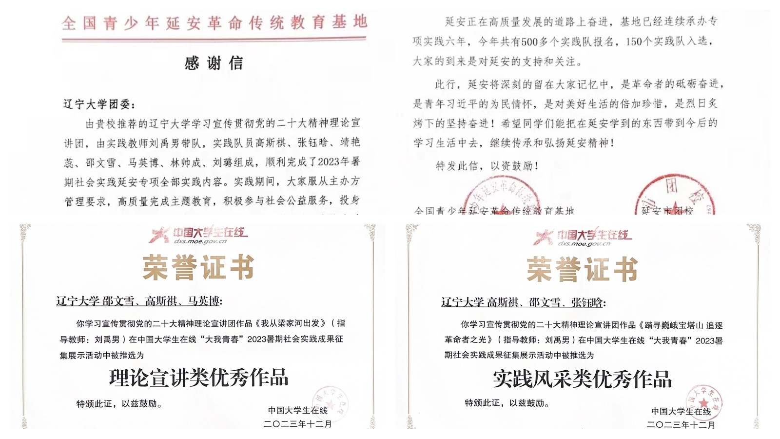 团队自成立以来,砥砺钻研,成绩显著。于20238月入选2023年全国大学生暑期三下乡社会实践追寻红色足迹 助力圣地发展专项活动。在教育部《中国大学生在线》组织的大我青春”2023暑期社会实践成果征集展示活动(全国1085所高校、2.6万件作品)推选中,团队风采作品《踏寻巍峨宝塔山,追逐革命者之光》入围实践风采类优秀作品(全国300件),理论宣讲作品《我从梁家河出发》入围理论宣讲类优秀作品(全国100件)。团队获评 2023年辽宁省大中专学生志愿者暑期三下乡社会实践活动优秀团队。20242月,策划启动了青廉在辽宁主题系列微talk活动,探寻辽宁六地红色文化资源中的廉洁元素,讲述独具辽宁特色、彰显辽宁精神的廉洁故事,带领和号召广大师生,廉润青春辽宁、奏响时代强音!第一期作品《雷锋的针线包》获得yl23455永利B站官方账号发布,引起热烈反响。日前,团中央青年志愿者行动指导中心、中国青年志愿者协会秘书处开展的2024年关爱行动七彩假期志愿服务团遴选工作中,入围全国高校志愿服务团队。