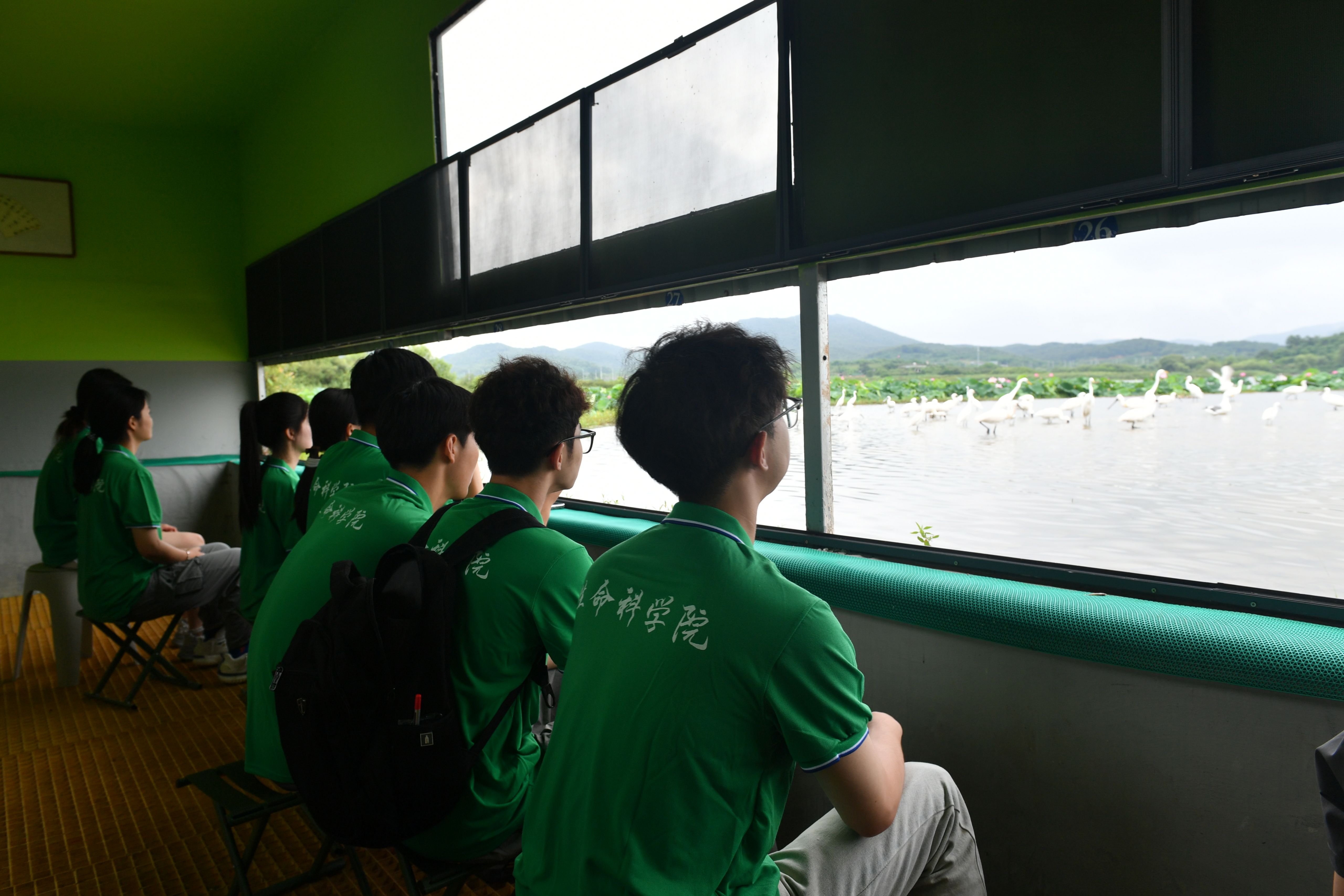 师生们来到庄河市张屯黑脸琵鹭栖息保护基地走访参观。庄河观驾湖是国家一级保护动物黑脸琵鹭重要繁殖栖息地,在这里师生们近距离观察黑脸琵鹭的形态特征,了解到黑脸琵鹭是世界珍稀濒危鸟类,庄河湿地对这一濒危物种保护具有重要意义。通过观察学习和参与基地野生动物救助站工作,学生们深刻认识到保护野生动物的重要性,纷纷表示将所学知识运用到生物保护实践中,为乡村振兴助力。