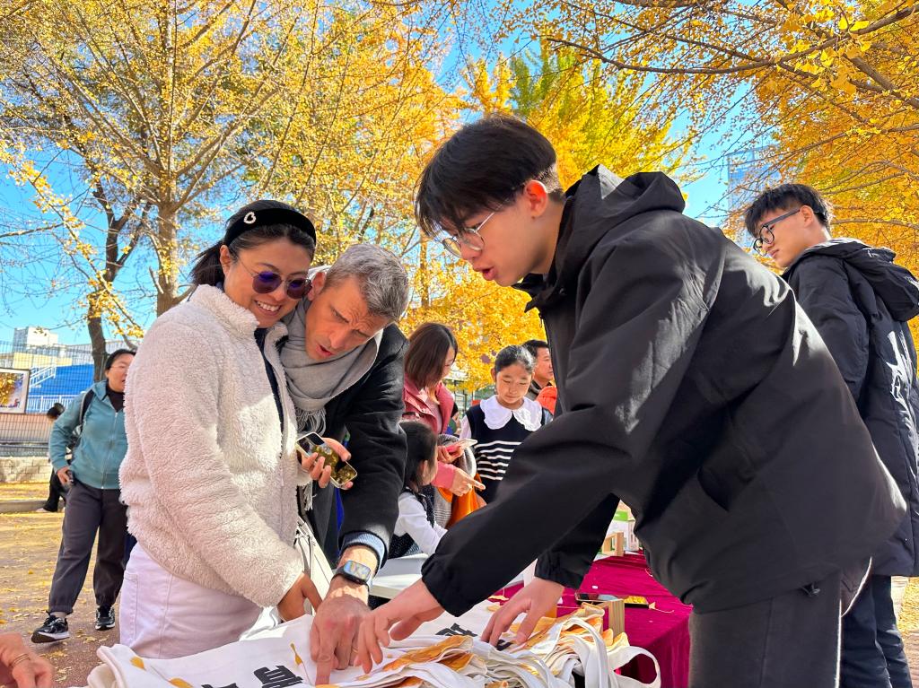 书签与明信片的底板样式由学生自主设计,背面附上一片今秋从地上捡拾的银杏叶,利用制作植物标本的技术将其合成为创意产品。从塑封的那刻起,秋日暖色与银杏美景便一同封存,构成独一无二的辽大故事与辽大回忆。这些周边创意产品深受校内外游客的喜爱,也为银杏节增添了更加浓厚的文化氛围。