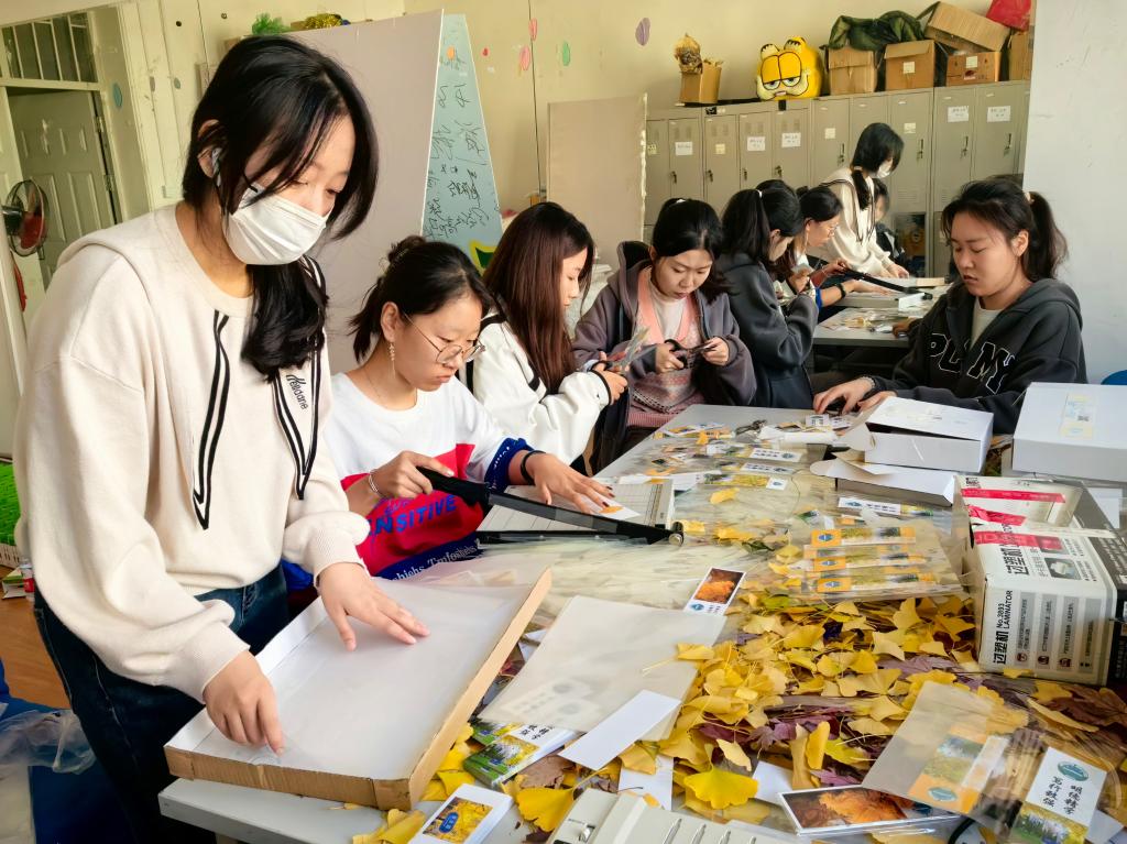 yl23455永利集团学生利用所学知识和专业特长,以银杏叶为主要元素,设计制作书签、明信片等不同类型、多种款式的银杏叶周边创意产品,并与银杏节现场的游客们分享互动,将遍地银杏叶封存在深秋美好的记忆当中,用yl23455永利集团学生独有的视角,刻画“银杏印象”。