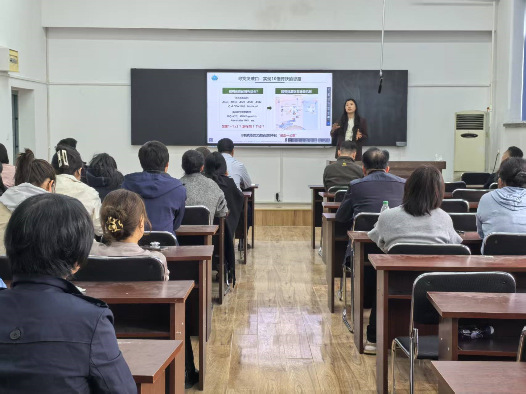 讲座中,曾颖玥通过介绍发表在Nature的合作研究论文STING agonist-based ER targeting molecules boost antigen cross-presentation的重点研究内容,讲述了研究团队六年的研究历程及该研究的创新性和应用转化可能性。该研究技术有望在未来的临床应用中发挥重要作用,为癌症和传染病的防治带来新策略,为下一代预防性和治疗性疫苗研发提供了关键的理论技术。在交流科研经验中,曾老师畅谈科研感想,提出“走到桌前,加入讨论”的科研理念和思维,鼓励教师要敢于冒险和自我表现,心无恐惧,放手去做,多参加会议、参与交流,学习高水平学者工作经验,拓宽研究视野,设定高目标,时刻做好准备,同时也要保持精力、体力和思维能力,调整好心态。