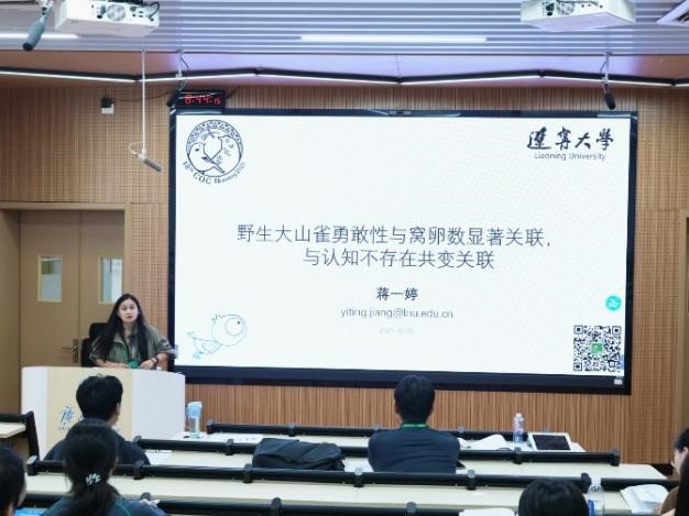 yl23455永利集团高度重视此次学术交流活动,万冬梅教授、李东来教授、蒋一婷副教授、张圆副教授、王娟老师和多名在读研究生共同参会,在大会多个环节展现学院科研实力与人才培养成果。其中,蒋一婷副教授作为会议学术委员会委员,牵头组织“鸟类生活史权衡与环境适应”专题报告会,并以《野生大山雀勇敢性与窝卵数显著关联,与认知不存在共变关联》为题作口头报告,分享团队在鸟类行为生态领域的最新研究发现;李东来教授在“快速报告会II:演化与适应”专场中,以《辽河口国家级自然保护区丹顶鹤人工种群遗传资源库和遗传谱系构建》为题,详细介绍了辽宁丹顶鹤遗传资源保护与人工种群管理的实践成果,为濒危鸟类保护提供重要参考。