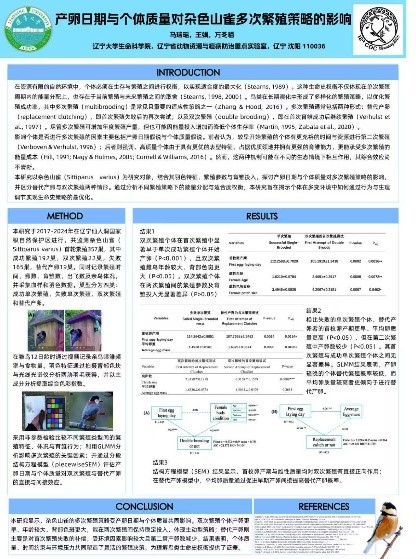 学院研究生在学术报告实践中表现出色,充分彰显了学校动物学科人才培养的扎实基础。博士研究生马瑞瑶在专题汇报环节,以《年龄依赖的繁殖策略:羽色与皮质酮在杂色山雀中的关联研究》为题作口头报告,并同步展示《杂色山雀多次繁殖策略的影响因素》壁报;博士研究生张雷和硕士研究生张之恒则以《黑鹳栖息地适宜性与连通性评估:基于物种分布模型与景观连通性分析》《平原地区风电场对鸟类多样性的影响具有距离效应和生态类群效应》为题参与壁报交流。此前,马瑞瑶和张之恒同学还受邀参加10月21日至23日举办的“第21届全国鸟类学研究生翠鸟论坛”,并作口头报告。系列学术实践不仅锻炼了研究生的学术表达与团队协作能力,更印证了学院“以学术实践赋能创新人才培养”的教育理念,通过组织参与高端学术会议,为研究生搭建接触前沿科研、对接行业专家的桥梁,系统提升其科研创新思维与专业认知水平。